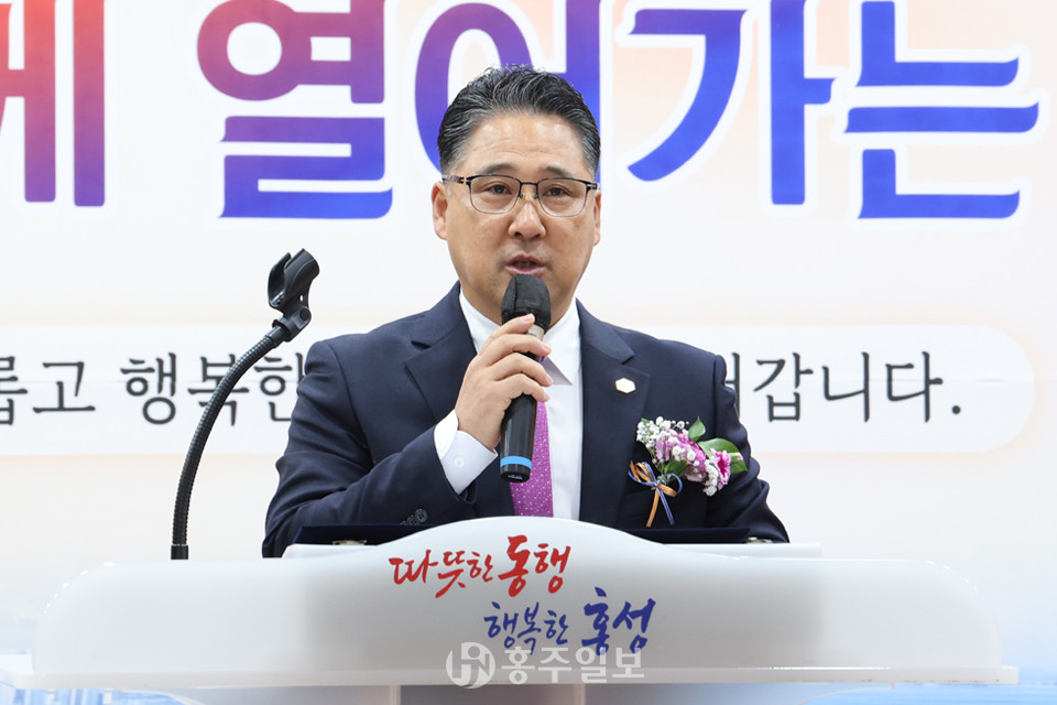 “홍성군은 충남도청 소재지이자 충남혁신도시로 대한민국의 경제적, 문화적 중심지로 성장해 가고 있으며, 이는 홍성군에서 지역발전의 밑거름이 되는 기업인들의 노력과 헌신 덕분이라 생각이 듭니다. 또한 내포신도시 첨단산업단지와 국가산업단지의 유치를 통해 지역발전에 큰 기회를 맞이하고 있습니다. 이러한 변화에 기업들의 역할이 더욱 커지고 있으며, 지역경제의 중심답게 앞장서야 할 것으로 생각하고 있습니다. 임기 동안 취임사를 통해 밝힌 세 가지의 과제에 집중하겠습니다.”