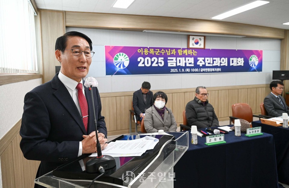 지난 9일 이용록 군수는 금마면을 찾았다. 이날 홍성군은 △국립호국원 홍성 유치 △농촌공간 재구조화와 재생 기본계획 수립 △농촌자원복합 산업화 지원(보육, 육성) △청년 자립형 스마트팜 지원(2개소) △홍성군 버스공영차고지 조성 △LPG 마을 단위 배관망(소형저장탱크) 보급 △소규모 수도시설 개량 등 2025년 금마면 주요사업을 설명했다.