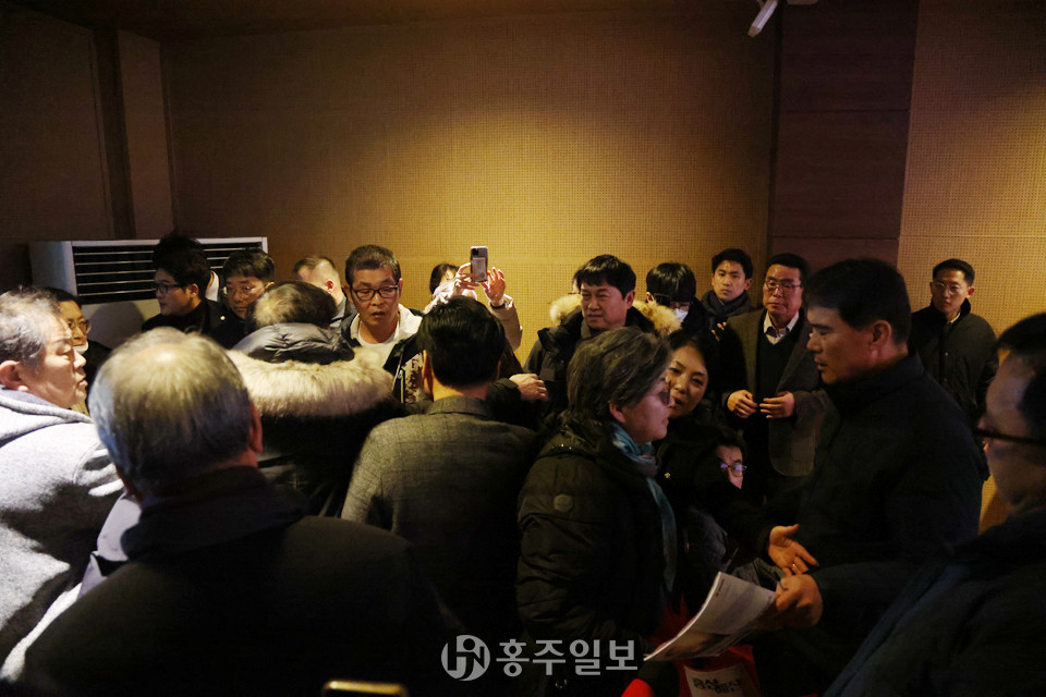 이날 강 의원은 오후 2시 홍성읍 의정보고회 후, 오후 4시에도 홍북읍에서 의정보고회를 진행했지만 홍성문화원에서와 같은 소동은 발생하지 않았다.