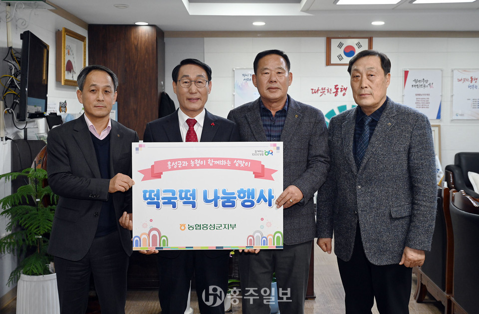 김종수 홍성군지부장은 “고물가·고금리로 힘든 시기를 보내고 있는 지역 주민이 따뜻한 명절을 보낼 수 있도록 떡국떡을 기탁하게 됐다”며 “우리 주변의 어려운 이웃들이 소외되지 않고 모두가 행복한 설명절이 되길 소망한다”고 말했다.