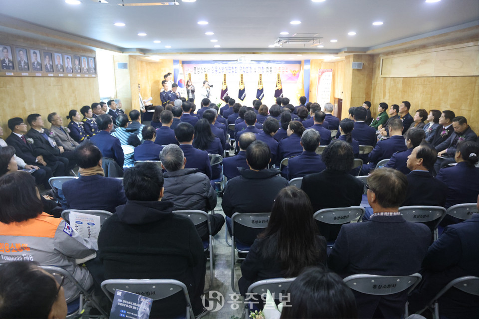 특히 이날 강기원 홍성소방서장이 장동소 제14대 홍성소방서의용소방대연합회장과 서용국금마면전담의용소방대장·윤종산 은하면전담의용소방대장·김두호 구항면전담의용소방대장·김수경 홍성읍여성의용소방대장·김기수 장곡면여성의용소방대장에게 도지사 임명장을 전수했다.