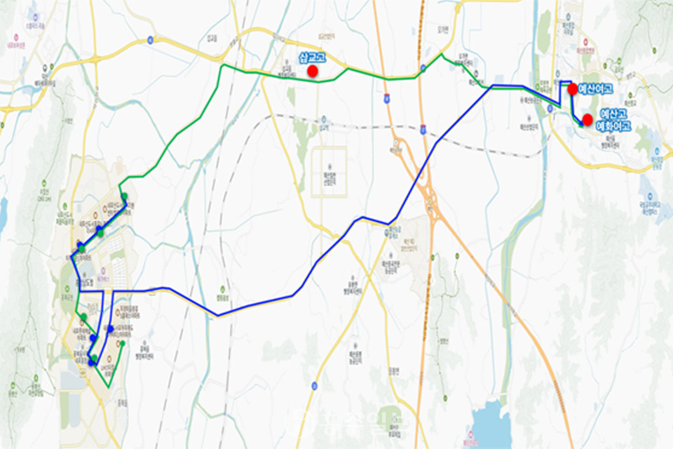 내포신도시 내 정류소 위치는 ‘예산 직통노선’은 △대방 1차 △중흥 2차 △이지더원 1차 △효성 △모아 1차 △대방 2차를 경유할 예정이고 ‘삽교 경유노선’은 △대방 1차 △중흥 2차 △이지더원 1차 △롯데·극동 △모아 1차 △모아 2차에 정차하게 될 것으로 보인다.