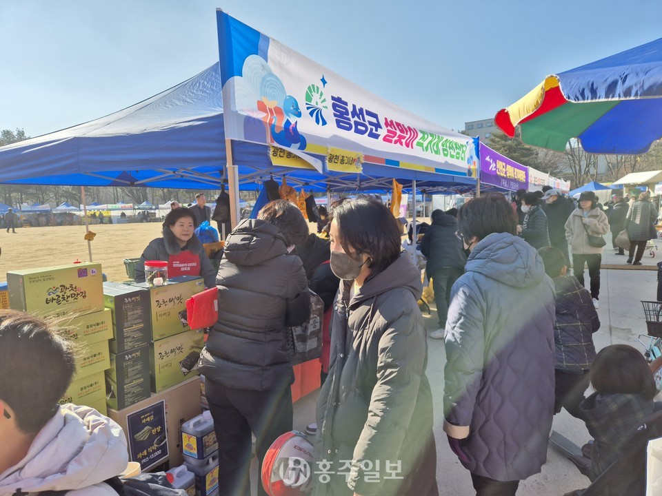 장곡면(유대근 면장)에서는 지난 23일부터 오늘(24일)까지 2일간 자매결연 도시인 서울 양천구 신정6동 양천공원에서 열린 설맞이 도농 직거래장터에 참여해 홍성군에서 생산한 우수한 농·특산물을 판매했다고 전했다.<사진>