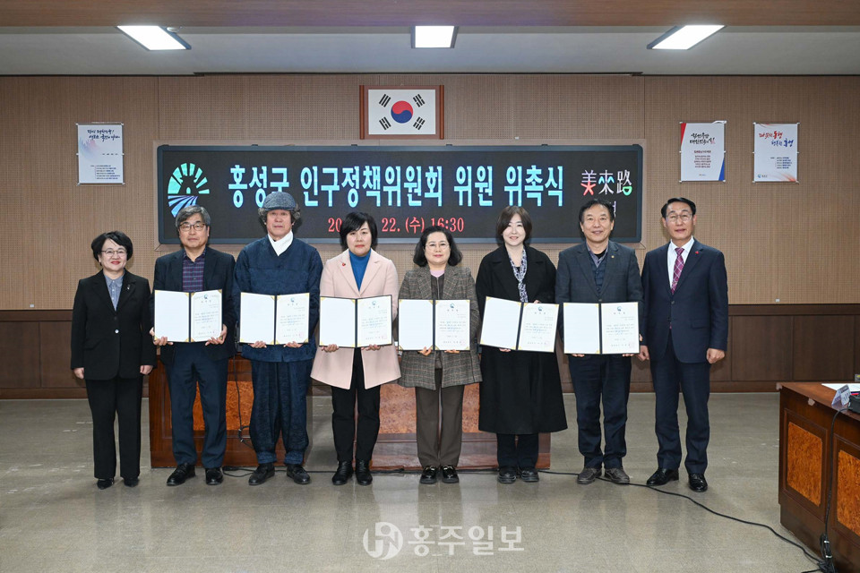 [홍주일보 홍성=오동연 기자] 홍성군이 지난달 22일 인구정책위원회 위촉식을 열고 8명의 위원을 위촉했다.<사진>