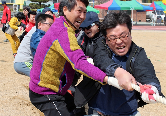 이날 대회는 600m계주와 줄다리기<사진>, 배구 등의 체육경기와 장기자랑 경품추첨 등의 행사가 이어졌다.