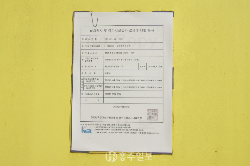 홍성군 산림녹지과 관계자는 “홍주숲어린이공원은 2023년 12월 준공됐지만 1차 준공이 끝난 것”이라면서 기존 유지관리 예산으로 “등산로 데크와 놀이터 배수 문제 등 보완사업을 하거나 예산을 확보할 예정이며 시설을 확충하면서 보완해 나가겠다”고 밝혔다.