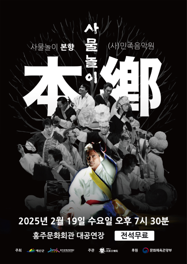 홍주문화관광재단과 예산군이 공동주최하고, ㈔민족음악원이 주관하는 국악 공연 ‘사물놀이 본향(本鄕)’이 오는 19일 오후 7시 30분에 홍주문화회관 대공연장에서 진행된다.