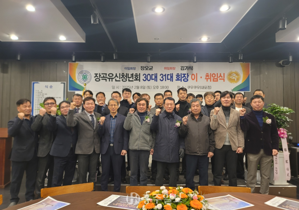 장곡유신청년회(이임회장 장오균·취임회장 김기식)는 지난 8일 쿠우쿠우 내포점에서 제30·31대 회장 이·취임식을 개최했다.<사진>