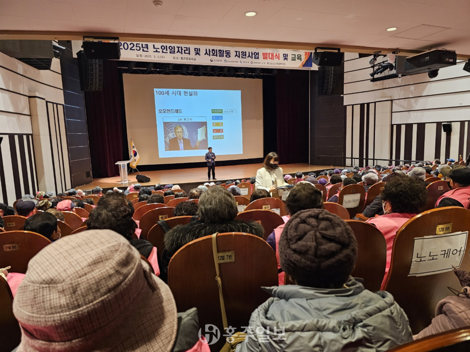 홍성군은 지난 3일부터 12일까지 홍주문화회관과 광천문예회관에서 노인 일자리에 참여하는 3504명의 어르신들과 ‘2025년 노인 일자리 및 사회활동 지원사업 발대식 및 참여자 교육’을 갖고, 본격적인 노인 복지 증진 사업 운영에 나섰다고 밝혔다.<사진>