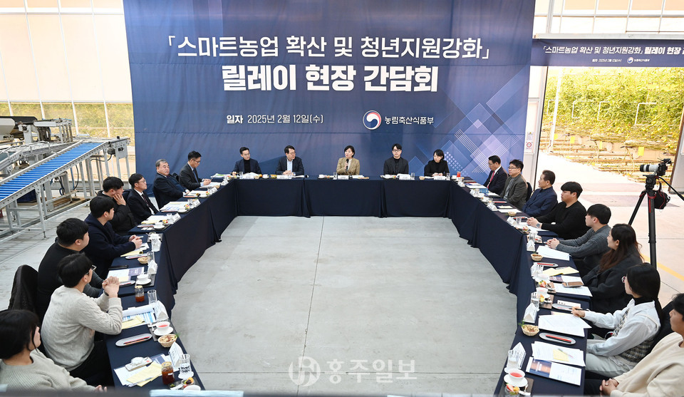 이날 행사에는 농식품부 송미령 장관을 비롯해 이용록 홍성군수, 한국농업기술진흥원, 농어촌공사 등 유관 기관와 전국의 청년 농업인, 민간기업인 등 약 60여 명이 참석했으며, 청년농업인 정책과 스마트팜 농산업 기업들을 위한 정책 방향이 논의됐다.<사진>