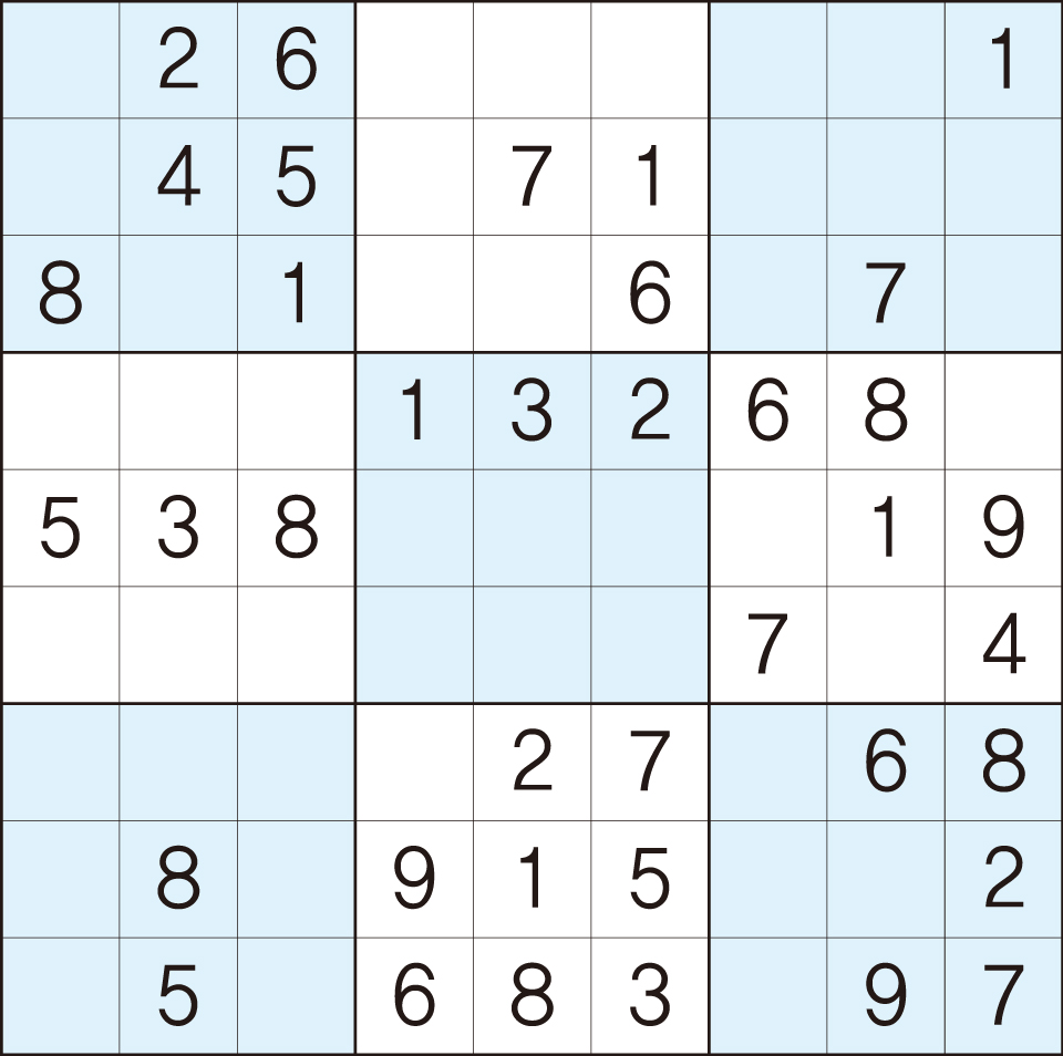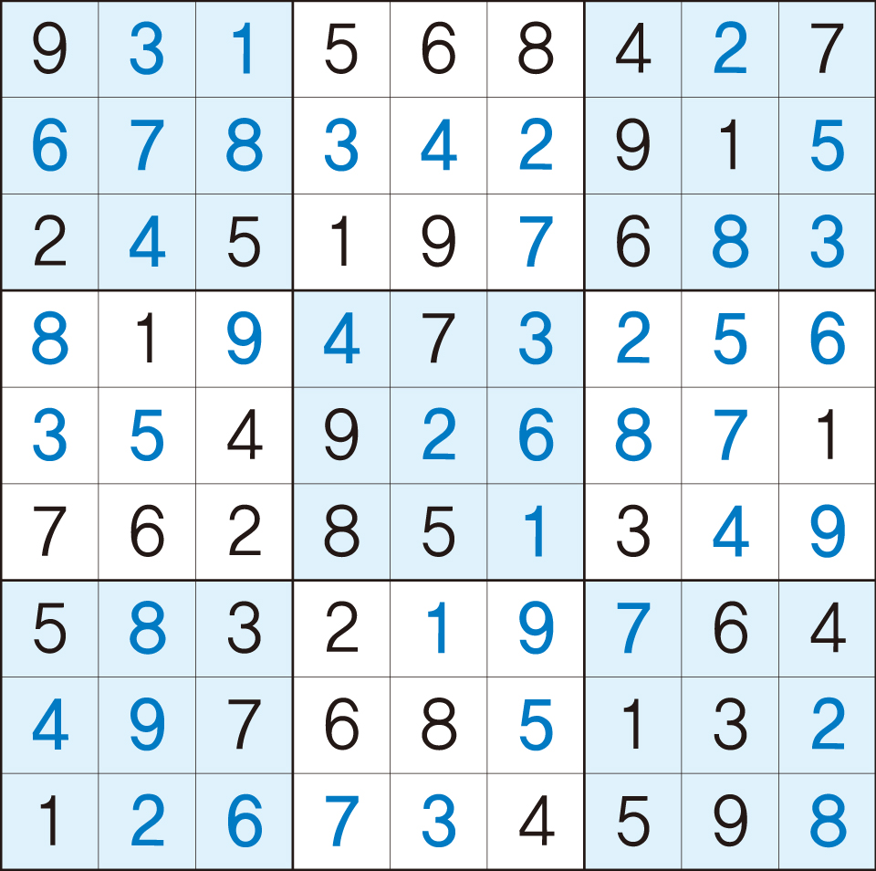 3. 큰 정사각형(9x9) 안에 있는 작은 정사각형(3x3) 안에는 숫자 1~9가 각 한 번씩 들어간다.