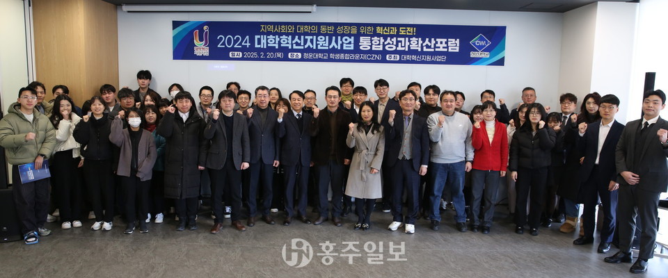 청운대학교(총장 정윤) 대학혁신지원사업단은 지난 20일 학생종합라운지(CZN)에서 지역사회와 대학의 동반 성장을 위한 혁신과 도전을 주제로 대학혁신지원사업 1·3유형 통합성과확산포럼을 개최했다.<사진>