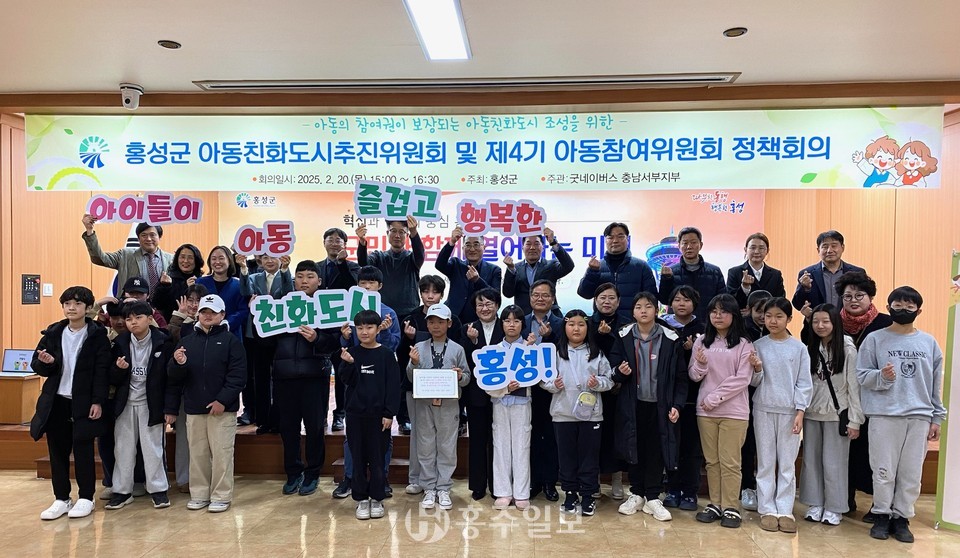 홍성군에 따르면 지난 20일 아동친화도시 추진위원회와 아동참여위원회 정책회의를 개최했다, 이번 회의는 2024년에 추진했던 아동친화도시 사업 결과보고와 2025년 사업 계획, 아동참여위원의 정책제안에 대한 부서장의 답변을 듣는 순으로 진행됐다.