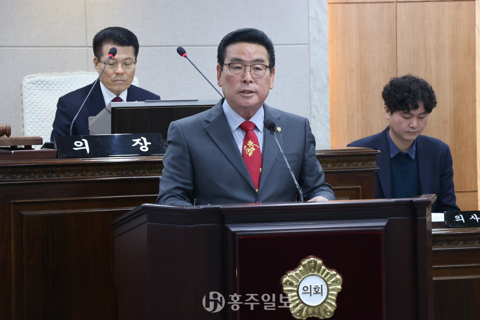 [홍주일보 홍성=오동연 기자] 홍성군의회 장재석 의원은 25일 제310회 홍성군의회 임시회에서 5분 자유발언을 통해 ‘천수만 홍성호 수산자원보호구역 해제’를 촉구했다.<사진>