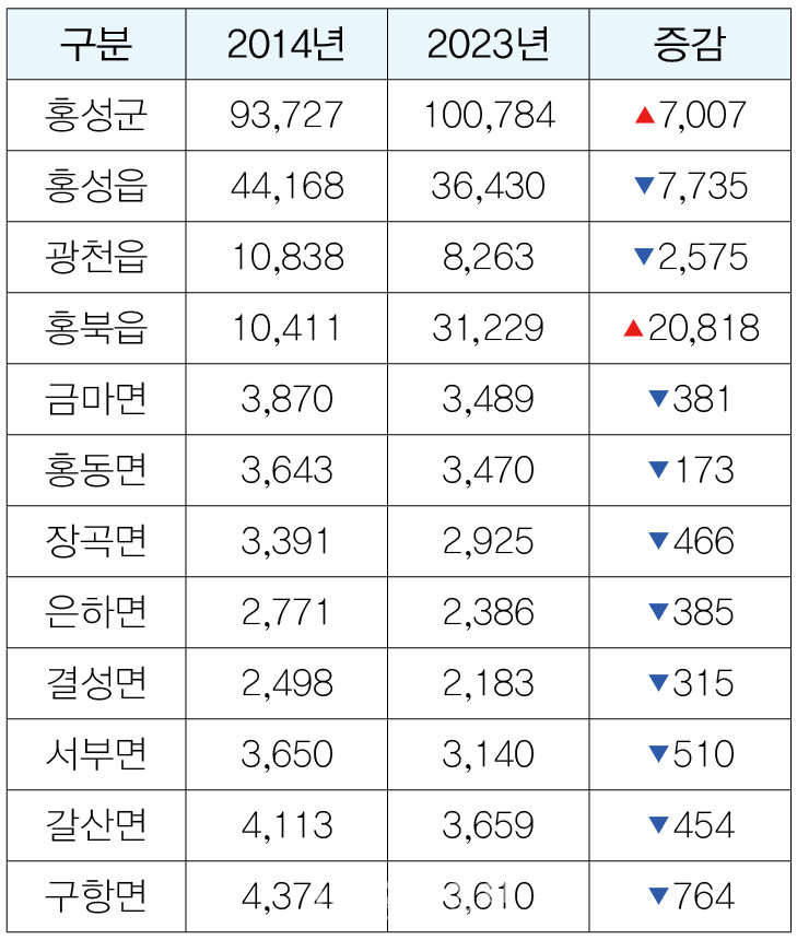 홍성군은 어떤 생각이나 정책적 판단에 의해 그런 결정을 했는지 모르겠다. 954만 명의 2차 베이비붐세대가 계속해서 농산어촌을 찾을 것임에 홍성군으로의 도시민 유치를 위해 받아들일 새로운 준비를 해야 한다. 균형적인 지역발전을 위한 면 지역개발과 종합적 인구정책이 필요하다.