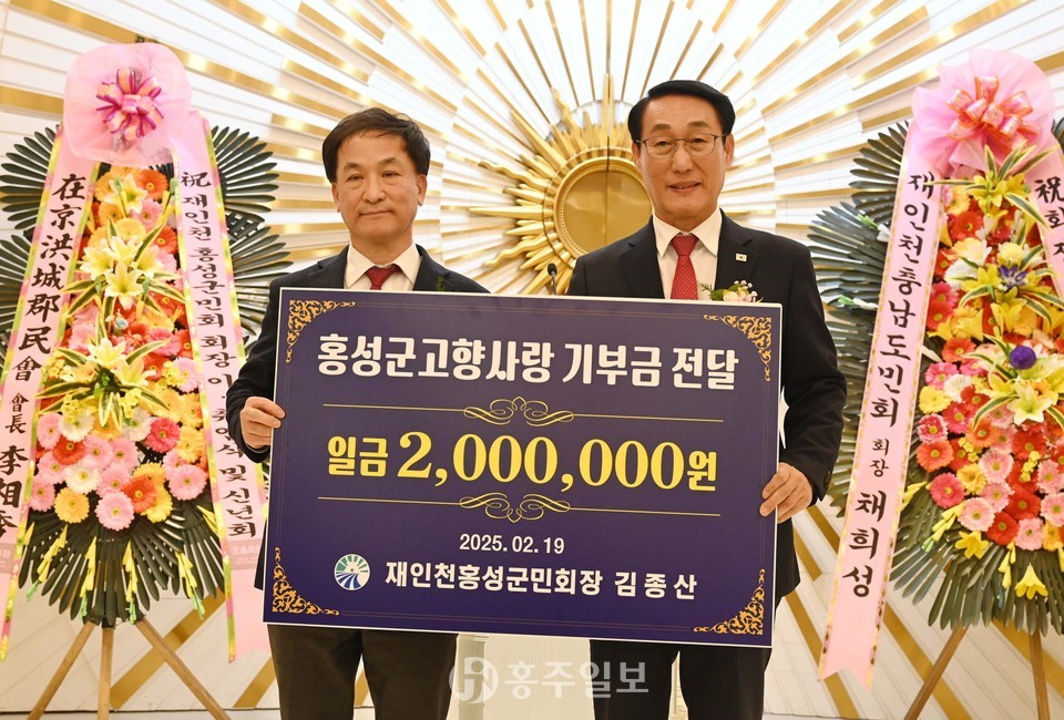 한편 한국문인협회장 김창호 시인이 시 ‘위대한 홍성’을 낭송한 후 박수갈채를 받았으며, 재인천홍성군민회의 새로운 시대를 연 김종산 취임회장은 홍성군수에게 고향사랑기부금 200만 원을 전달하며 고향사랑을 실천했다.