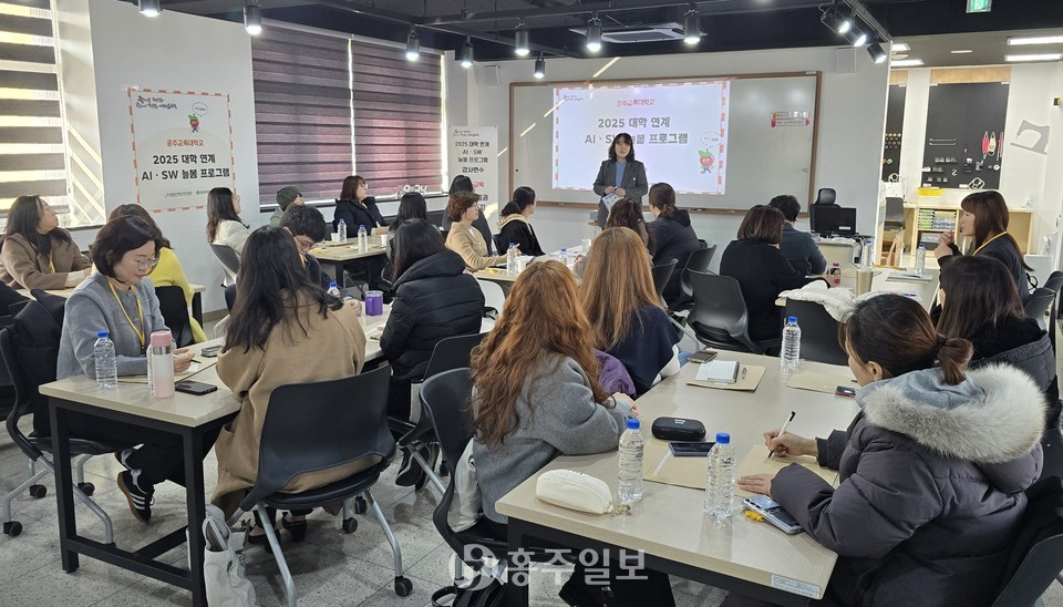 예산교육지원청(교육장 박동신)은 지난 26일 9시 30분부터 늘봄학교 프로그램 강사 34명을 대상으로 ‘2025 대학 연계 AI‧SW 늘봄 프로그램 강사 역량 강화 연수’를 실시했다.<사진>