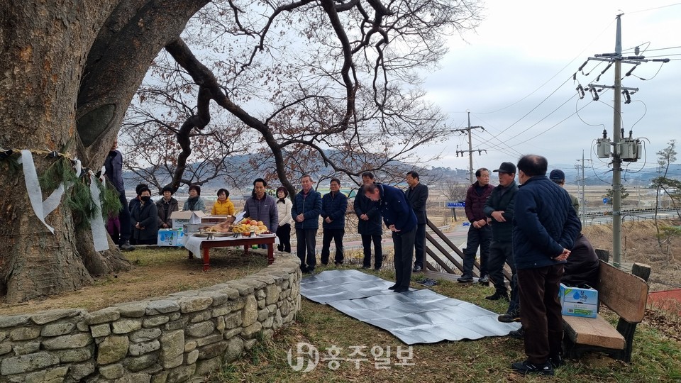 갈산면 신촌마을에서는 지난 28일 마을 주민 50여 명이 참석한 가운데 마을의 상징인 500년 된 보호수 아래 갈산면과 신촌마을의 안녕과 한 해의 소망을 기원하는 당산제를 거행했다.<사진>