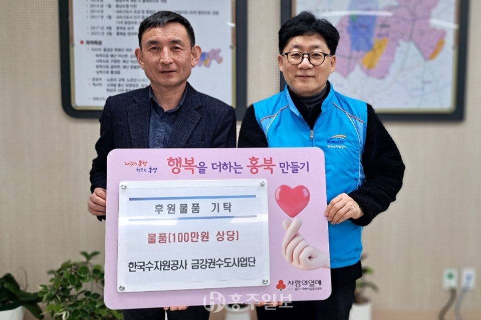 한국수자원공사 금강권수도사업단(단장 김범석)은 지난달 27일 홍북읍행정복지센터를 방문해 100만 원 상당의 식료품을 기탁했다.<사진>