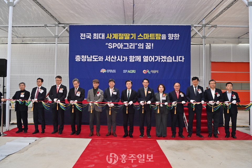 국내에서는 처음으로 딸기를 사계절 내내 생산하는 스마트팜 앵커기업인 농업회사법인 ‘SP아그리(대표 박대성)’는 지난달 28일 서산시 운산면 신축 스마트팜에서 김태흠 충남지사와 청년교육생 등 150여 명이 참석한 가운데 준공식을 개최하고, 본격 가동을 안팎에 알리며 충남에 새롭게 뿌리를 내렸다.