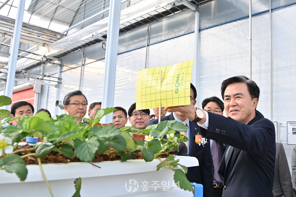 김태흠 지사는 “스마트팜 825만㎡ 조성을 통한 청년농 3000명 유입을 민선8기 핵심 정책으로 추진하며 앵커기업 유치가 절실했는데, 이번에 갈증이 해소된 것 같다”며 “하우스가 도입되면서 딸기가 겨울 과일로 바뀐지도 꽤 됐는데, 여름딸기를 선보인다니 격세지감을 느낀다”고 감탄했다.