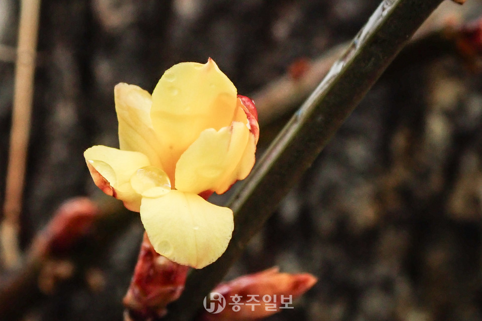 [홍주일보 홍성=글 한기원 기자/사진 오동연 기자] 24절기(節氣) 중에서 세 번째 절기인 경칩(驚蟄)은 초봄의 시작 기준이 되는 절기로 알려져 있다. 하지만 경칩을 하루 앞둔 지난 4일 홍성군을 비롯한 전국에 오전부터 밤까지 눈발이 날리며 이례적인 3월의 설국(雪國)이 펼쳐졌다. 사진은 새로운 시작의 설렘과 기대감을 안겨주는 새학기가 시작된 지난 4일 홍북읍 석택리 택리마을에 봄을 가장 먼저 알리는 꽃 ‘영춘화(迎春花)’가 꽃망울을 터뜨린 모습.