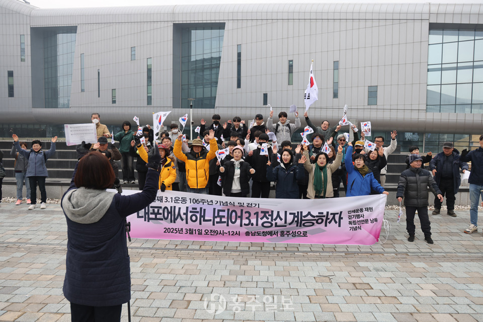 [홍주일보 홍성·예산=김영정 기자] 지난 1일 홍성과 예산의 시민단체들이 3·1운동 106주년을 맞아 ‘내포에서 하나 되어 3.1정신 계승하자’라는 주제로 기념식과 걷기 행사를 진행했다. 이날 행사는 정해진 주최 없이 지역 시민들이 자발적으로 추진하는 누구나 참여가 가능한 행사로, 지난 2012년 3월 1일, 예산과 홍성지역의 시민들이 함께 진행한 이래로 올해 열네번째를 맞았다.