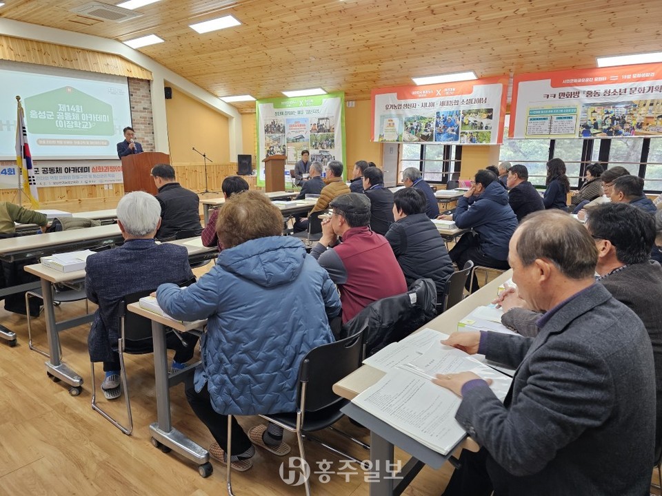 홍성군마을만들기지원센터는 지난 5일 문당환경농업교육관에서 ‘제14회 공동체 아카데미(이장 학교) 입학식’을 개최했다.<사진>