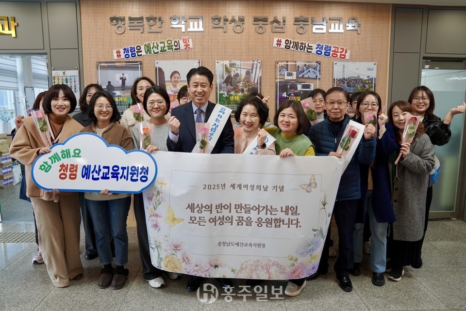 예산교육지원청(교육장 박동신)은 오늘(7일) 세계 여성의 날을 맞아 청렴 문화 확산을 위한 직원 맞이 행사를 진행했다.<사진>