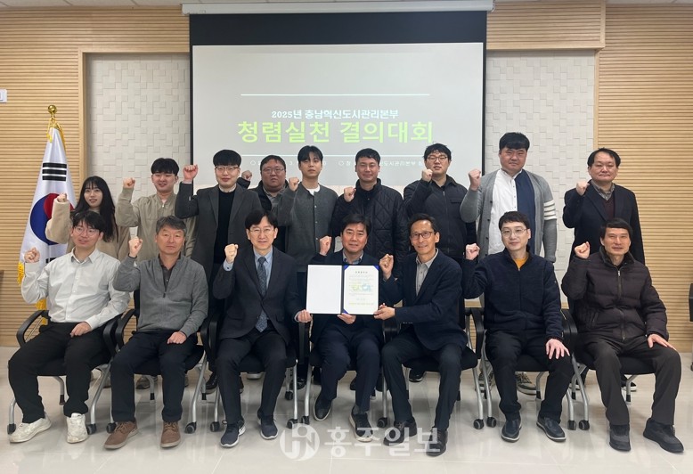 지방자치단체조합 충남혁신도시관리본부는 지난 10일 충남혁신도시관리본부 회의실에서 직원 20여 명이 참석한 가운데 ‘청렴실천 결의대회’를 개최했다.<사진>