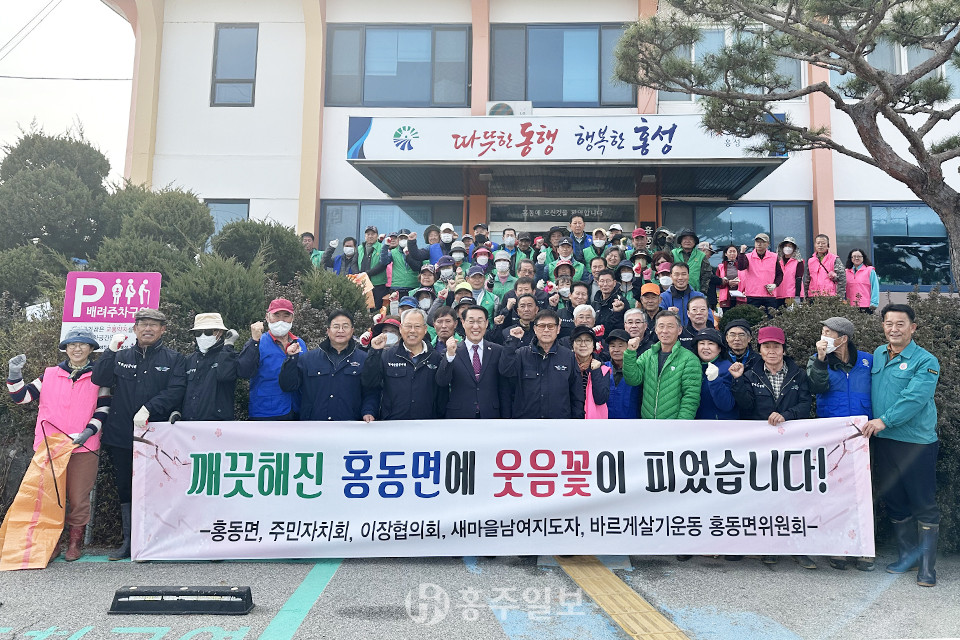 홍동면(면장 서일원)은 지난 13일 봄을 맞아 지역 내 기관단체와 손잡고 겨우내 묶은 쓰레기 대청소에 들어갔다.