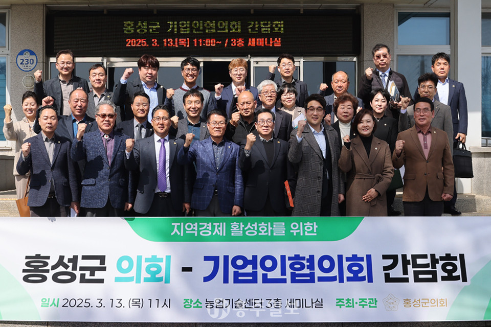 홍성군의회(의장 김덕배)가 지역경제 활성화를 위해 관내 기업인들의 의견을 듣는 자리를 마련했다. 홍성군의회는 13일 홍성군농업기술센터 세미나실에서 홍성군 기업인협의회(회장 장보근)와 간담회를 개최했다.