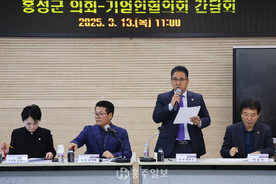 간담회를 주재한 김덕배 의장은 인사말을 통해 “기업이 살아나야 홍성군이 풍요롭고 행복한 도시가 될 수 있다”며 “기업 하기 좋은 홍성을 만들기 위해 의회가 앞장서겠다”고 강조했다. 이어 장보근 회장은 “이번 간담회를 통해 지역경제 발전과 일자리 창출의 한 축을 담당하는 기업인들과의 소통이 더욱 강화되길 바란다”고 밝혔다.