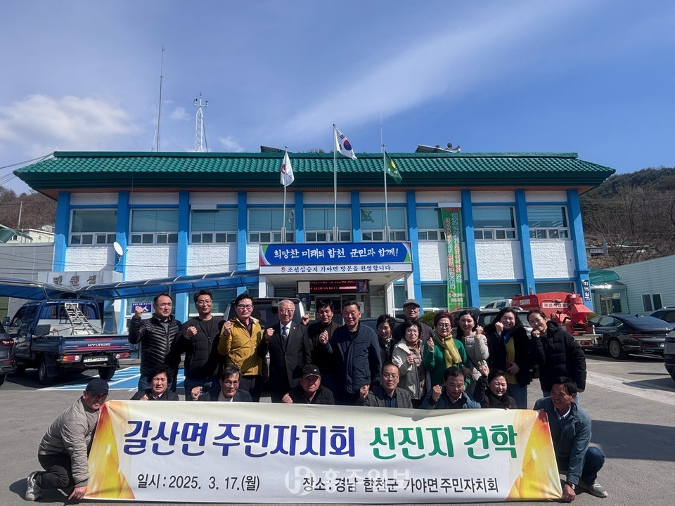 이기한 회장은 “합천군 가야면은 주민이 주체가 돼 활발하게 자치 활동을 펼치는 모범적인 지역”이라며 “이번 방문을 통해 우수한 운영 사례를 배우고 갈산면 실정에 맞는 자치 활성화 방안을 모색하겠다”고 말했다.