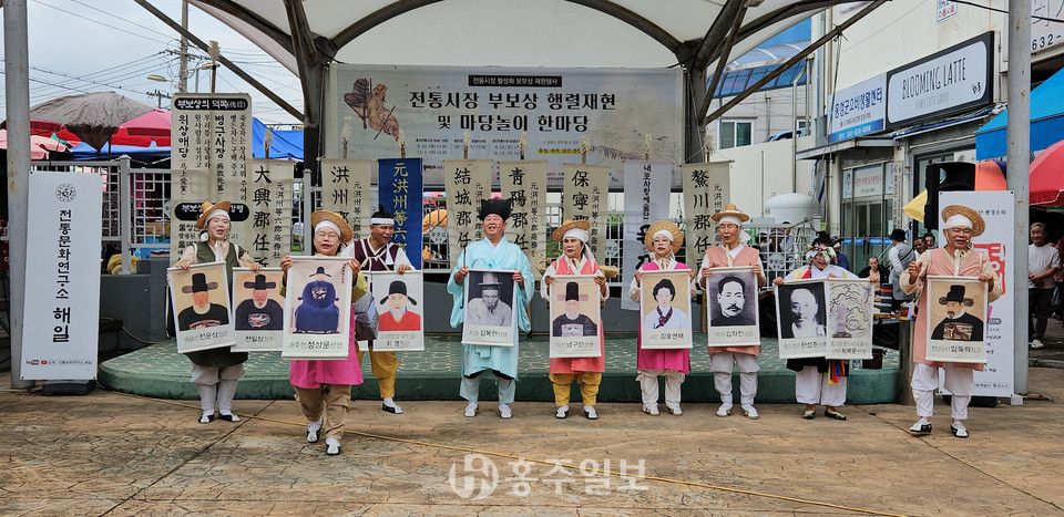 그중 2021년부터 시작된 ‘전통시장 부보상 행렬 재현 및 마당놀이 한마당’은 △홍성·광천·갈산전통시장 △(사)대한노인회 홍성군지회 △홍성군노인종합복지관 △홍성군6차산업협동조합 △코레일 홍성역 △임득의장군 추모사업회 △전통문화연구소 해일 등과 업무협약을 맺어 매년 성황리에 이어지고 있다.