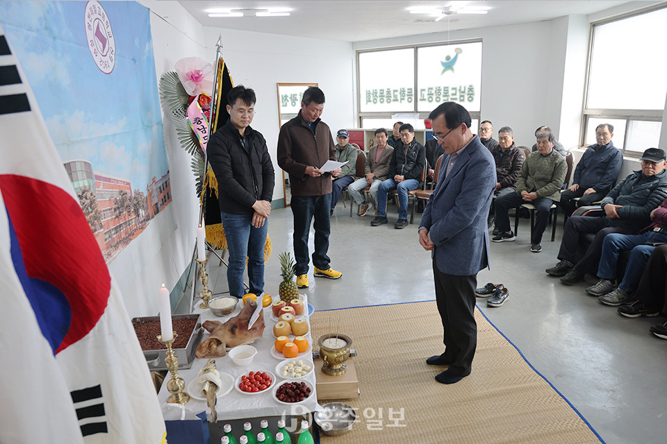 기별체육대회의 성공적인 개최를 기원하는 김주호 이사장의 축문을 시작으로 이계석 대회장이 고사상에 술과 절을 올렸고, 행사에 참석한 서종화 교장을 비롯한 내빈들과 충남드론항공고 동문들도 기수별로 예를 올렸다.