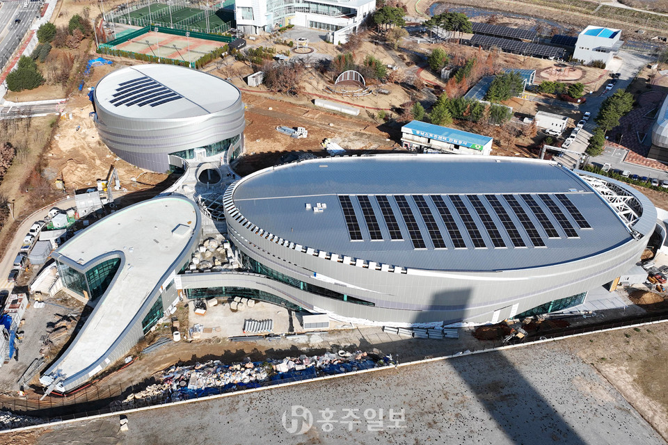 충남스포츠센터는 예산군 삽교읍 내포신도시 환경클러스터 내 2만 614㎡의 부지에 551억 원을 투입해 건립 중으로, 현재 98%의 공정률을 기록하고 있다.