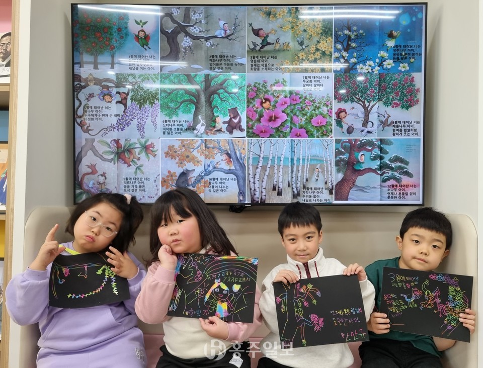 홍주연 강사의 지도 아래 학생들은 다양한 동화를 읽고 서로의 생각을 나누는 시간을 가진다. 첫 수업에서는 ‘악어오리 구지구지’와 ‘열두 달 나무 아이’를 읽었으며, 독서 후에는 느낀 점을 이야기하며 공감과 소통의 시간을 가졌다. 이어 독후활동으로 각자의 탄생 달을 주제로 그림을 그리는 창의 활동 또한 진행했다.<사진>