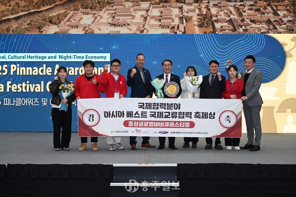 홍성군의 홍성글로벌바비큐페스티벌이 지난 20일 ‘2025 세계 축제 정상회의 아시아페스티벌어워즈 축제국제협력부문’에서 ‘아시아 베스트 국제교류협력 축제상’을 수상하는 성과를 거뒀다.<사진>