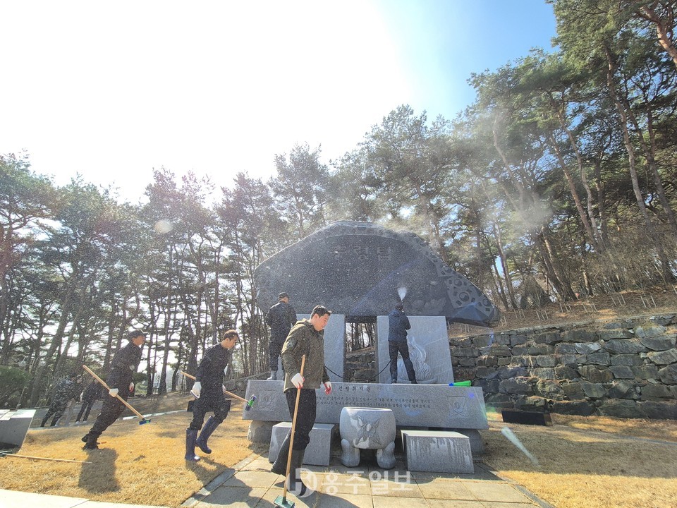 홍성군은 지난 21일 봄철 해빙기를 맞아 특수임무 유공자회 홍성군지회 회원들과 함께 충령사 주변 충령탑을 비롯한 탑과 비석을 대상으로 봄맞이 청소를 실시했다.<사진>