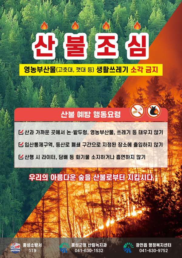 한편 광천읍은 앞으로도 주민들과 함께하는 산불 예방 활동을 지속적으로 전개해 산불로 인한 피해를 최소화하고 안전한 지역 환경을 조성해 나갈 계획이다.