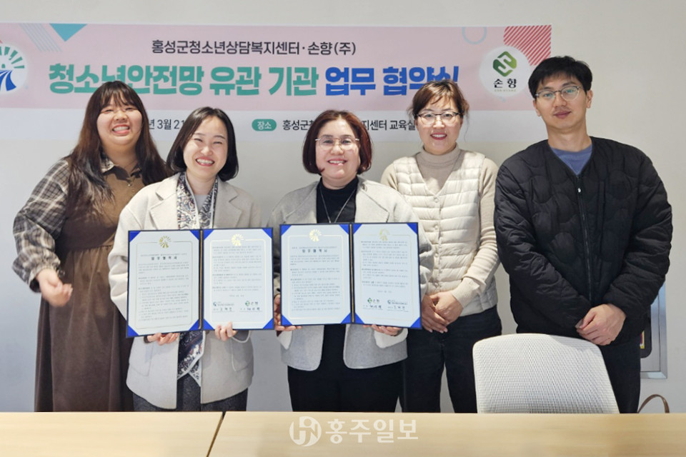 홍성군청소년상담복지센터(센터장 조현정)는 지난 21일 손향㈜(대표 채선병)와 업무협약(MOU)을 체결하고, 청소년 안전망 강화를 위한 협력을 약속했다.<사진>