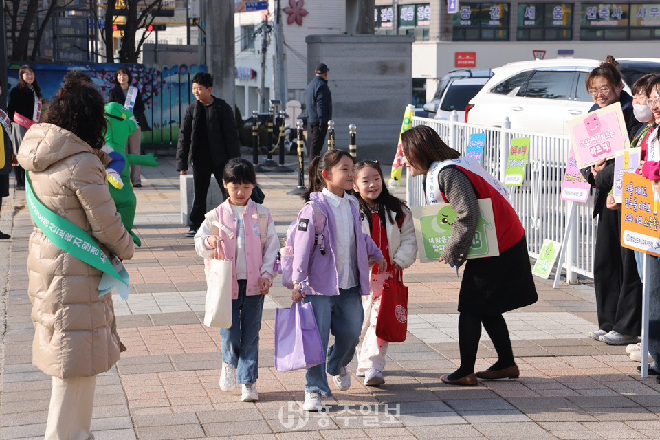 캠페인은 등교하는 학생들을 대상으로 홍보 물품과 간식 등을 배포하고 학생들이 안전하게 등교할 수 있도록 안내하며 △생명존중 의식 함양 △학업중단 예방 △교통안전 △학교폭력예방 등의 캠페인 문구를 홍보했다.