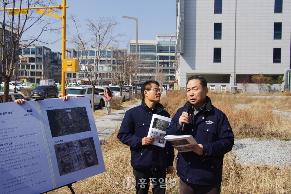 [홍주일보 홍성=오동연 기자] 지난 19일 홍성군의회는 내포신도시 중심상업지구 내 주차타워 조성 후보지 현장을 방문했다.