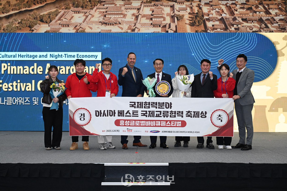 홍성글로벌바비큐페스티벌이 지난 20일 ‘2025 세계 축제 정상회의 아시아페스티벌어워즈 축제국제협력부문’에서 ‘아시아 베스트 국제교류협력 축제상’을 수상하는 성과를 거뒀다. <사진>