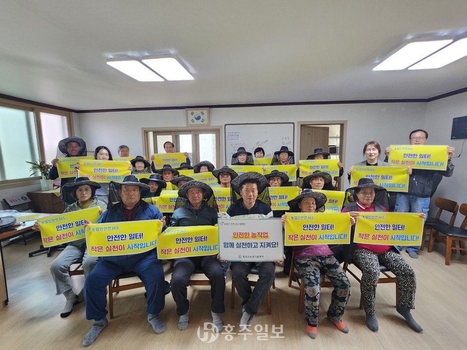 홍성군농업기술센터가 농업인의 안전의식 향상과 안전한 작업 환경을 조성하기 위해 지난 27일 장곡면 신풍1리 마을에서 안전 실천 캠페인을 추진했다.<사진>