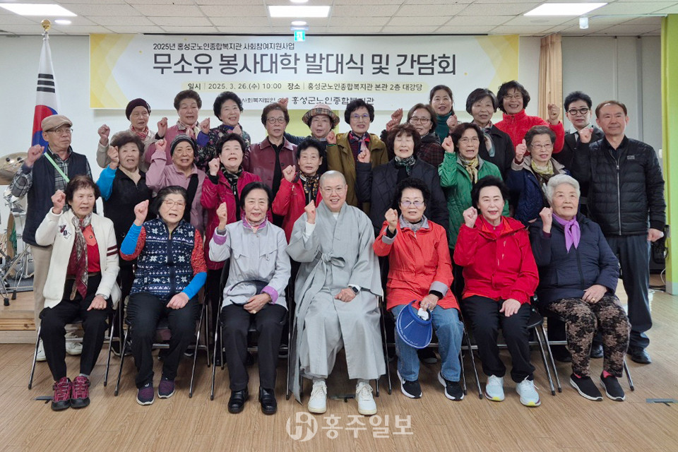 사회복지법인 수덕 홍성군노인종합복지관(관장 육통스님)은 지난달 26일 복지관 강당에서 2025년 홍성군노인종합복지관 사회참여 지원사업 무소유봉사대학 봉사단 발대식을 진행했다.<사진>