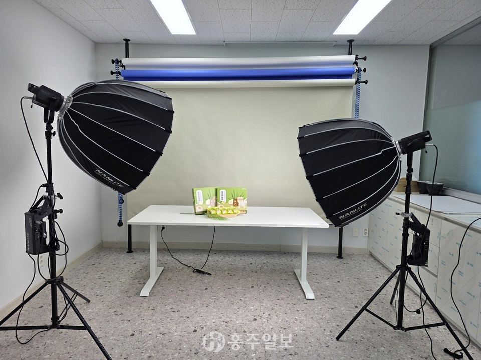 사진 촬영실은 농산물과 농산물 활용 가공 상품의 홍보용 사진을 촬영할 수 있는 곳으로, 다양한 배경지, 조화, 접시 등의 소품과 조명을 갖추고 있어 이용자들에게 고품질의 제품 사진을 촬영할 수 있도록 마련됐다.