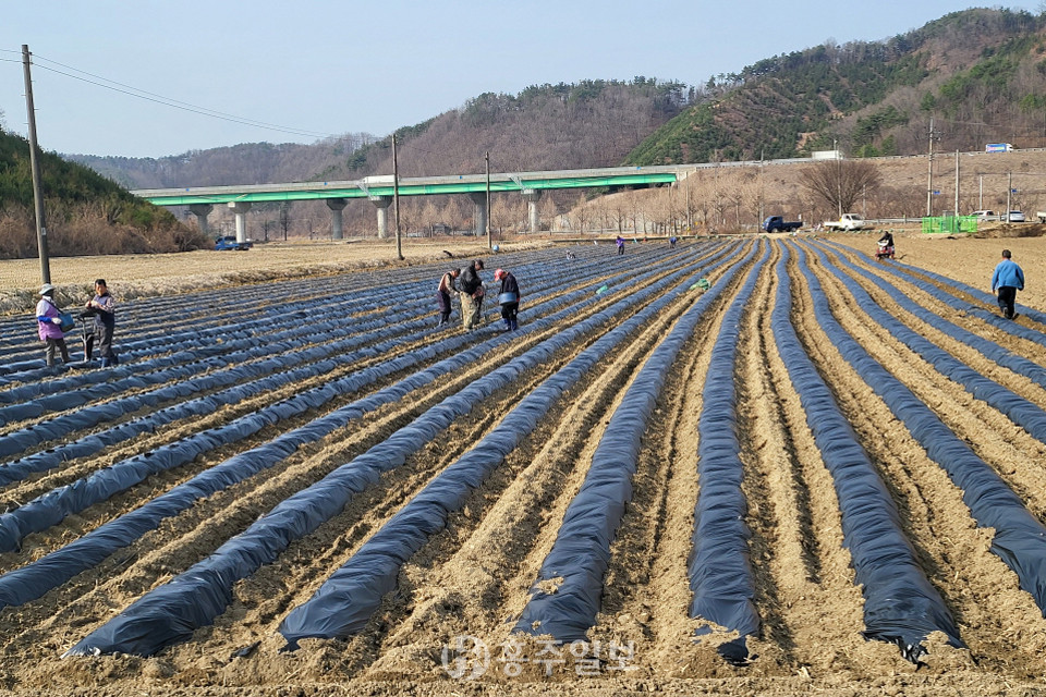 감자연구회는 지난달 24일 예산군 대흥면 대률리 일원 6695㎡ 규모의 논에 봄 감자 파종 작업을 실시했으며, 이날 작업은 감자연구회 회원 10여 명이 피복, 파종, 복토 등의 공동작업을 실시하는 등 체계적으로 이뤄졌다.