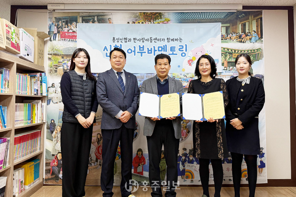 홍성신용협동조합(이사장 김민겸)은 지난달 27일 한사랑지역아동센터(센터장 강난예)와 신협 어부바 멘토링 협약식을 가졌다. 홍성신협은 한사랑지역아동센터 아동들을 대상으로 각종 체험과 견학 등 멘토사업을 진행할 예정이다.